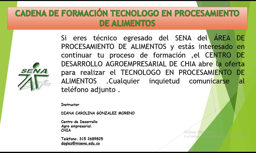 Si eres técnico egresado del Sena del Área de Procesamiento de Alimentos y está interesado en continuar tu proceso de formación, el CENTRO DE DESARROLLO AGRO-EMPRESARIAL DE CHIA abre la oferta para realizar el TECNÓLOGO EN PROCESAMIENTO DE ALIMENTOS.