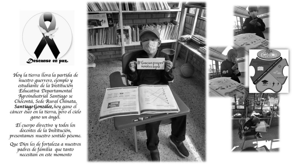 Hoy la tierra llora la partida de nuestro guerrero, ejemplo y estudiante de la institución Educativa Departamental Agroindustrial Santiago de Chocontá, Sede Rural Chinata, Santiago González, hoy ganó el cáncer oseo en la tierra, pero el cielo ganó un angel.