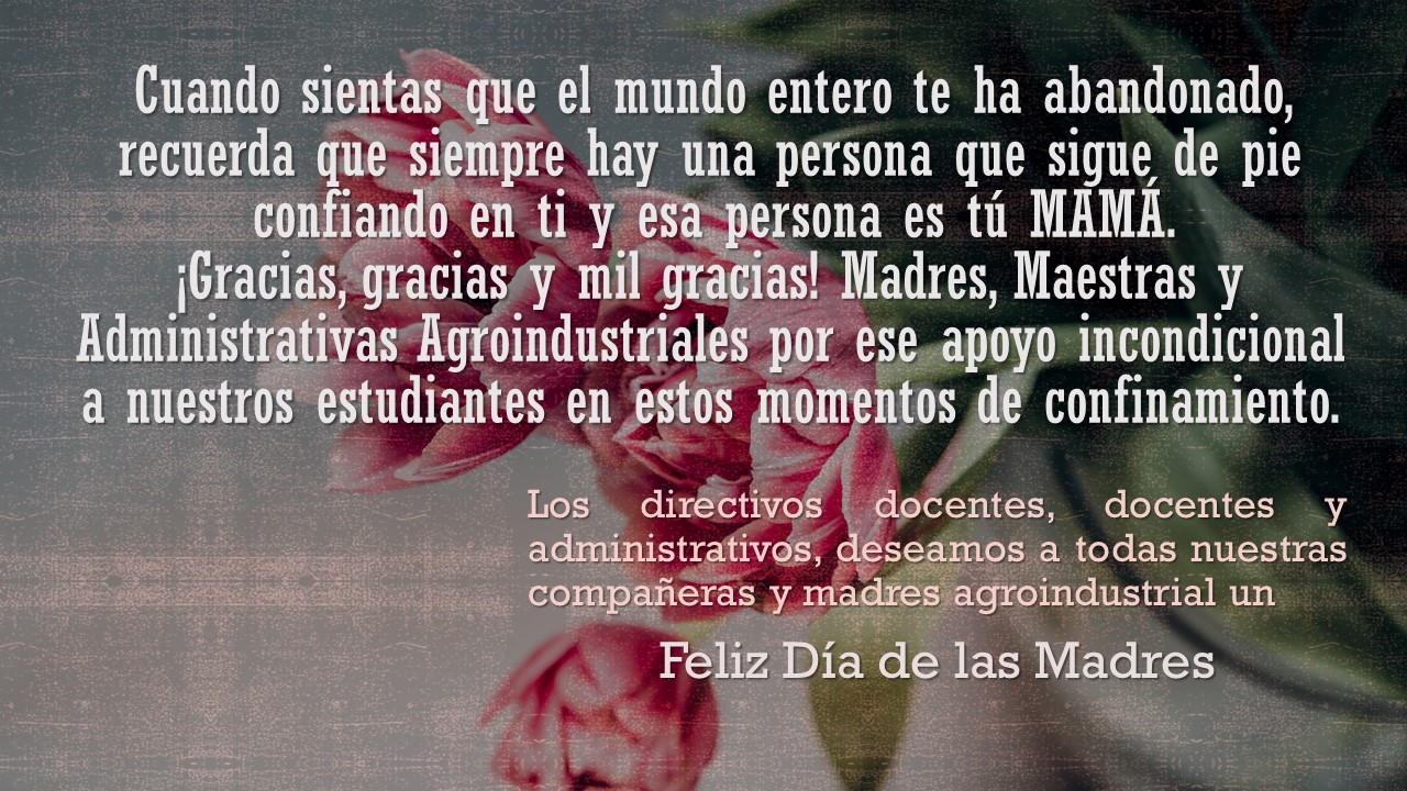 Los directivos docentes, docentes y administrativos, deseamos a todas nuestras compañeras y madres agroindustriales un Feliz Día de las Madres.